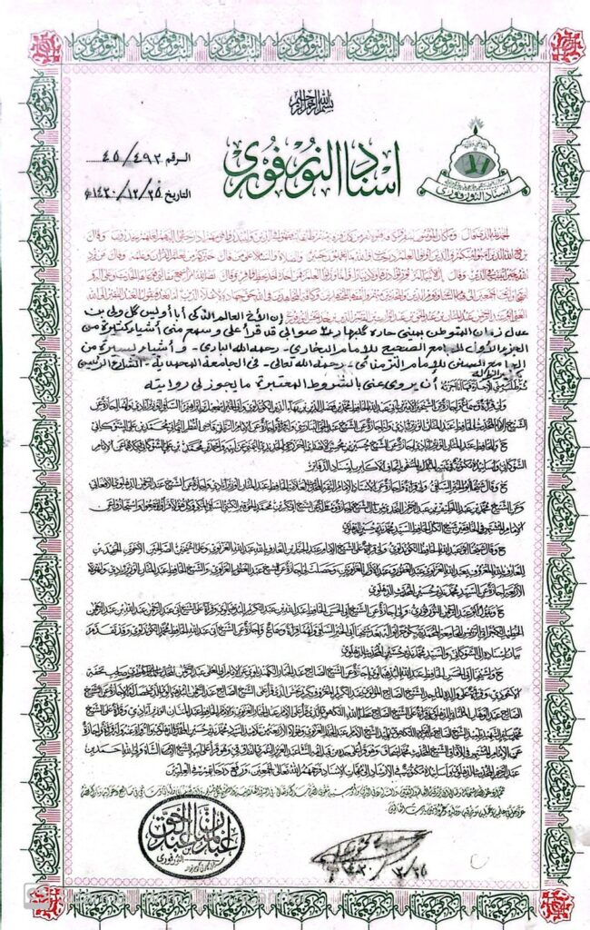 This sanad represents a chain of knowledge passed down through qualified scholars, ensuring authenticity, discipline, and adherence to classical Islamic principles. The presence of scholarly supervision and certified instruction is a core pillar of the educational work carried out under Alharamain Trust.